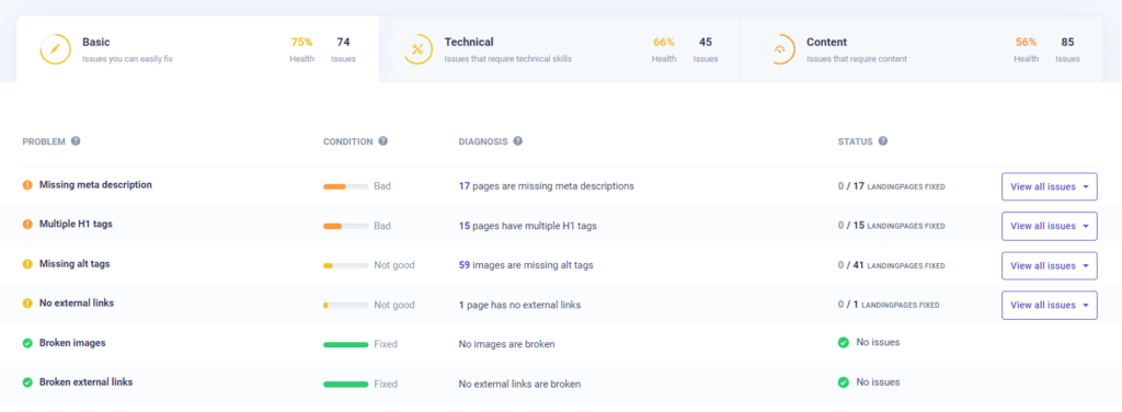 Identify SEO Issues and Keywords on Your Website! We will help you check for issues and discover keywords on every landing page of your site. Our assessment covers a comprehensive SEO review of your pages, focusing on content quality, technical setup, and overall optimization.